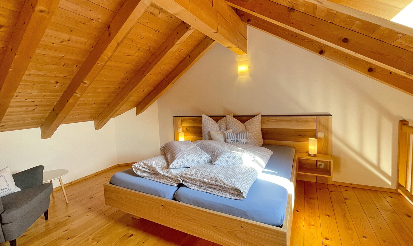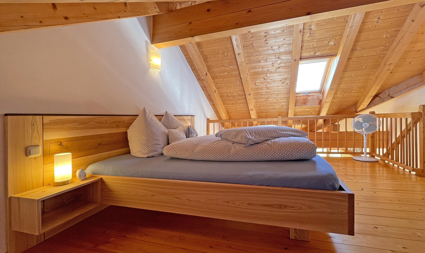 - Schlafgalerie mit Dachfenster und direktem Seeblick, Bettwäsche, Nackenkissen, Ruhesessel und Wecker, Verdunkelungsrollo und Mückengitter, Stand-Ventilator