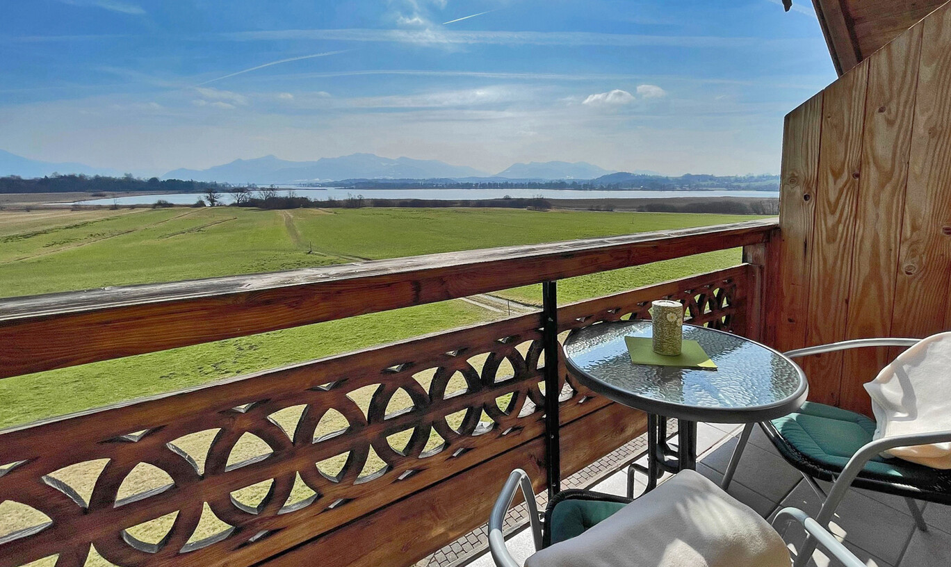 - Der Balkon thront malerisch über unserer Terrasse und bietet einen herrlichen Ausblick direkt auf den Chiemsee und die traumhafte Voralpenlandkulisse. Perfekt um bei einer Tasse Kaffee oder einem Gläschen Wein den Blick in die Ferne schweifen zu lassen und der Natur leise zuzuhören!