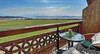 - Balkon mit kleinem Tisch, Stühlen und Sonnenschirm