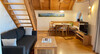 - Ausgestattete Küchenzeile mit Mikrowelle, zwei Ceranfeldern, Spülmaschine mit Spültabs, Kaffeemaschine, Toaster, Wasserkocher, Thermoskanne, Kühlschrank mit Gefrierfach, Geschirrtücher, Spülmittel, Müllbeutel uvm.