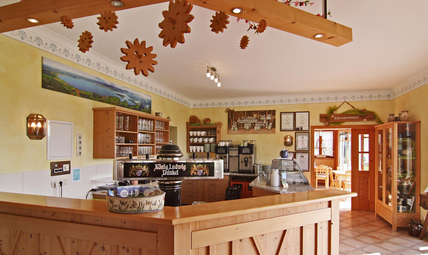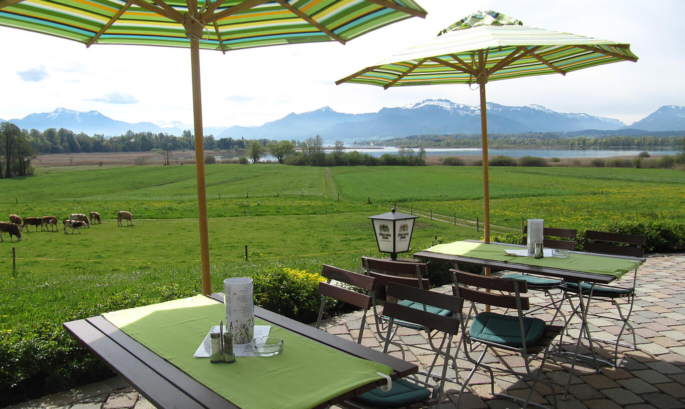 Kühlen Sie sich etwas ab mit unseren Eisspezialitäten des Hauses oder mit erfrischenden Getränken, die wir Ihnen gerne bei schönstem Wetter auf unserer Panoramaterrasse mit Weitblick auf den See, über die Schafwaschener Bucht bis nach Prien am Chiemsee hinein und mit Blick auf die Berge der Chiemgauer Alpen präsentieren.